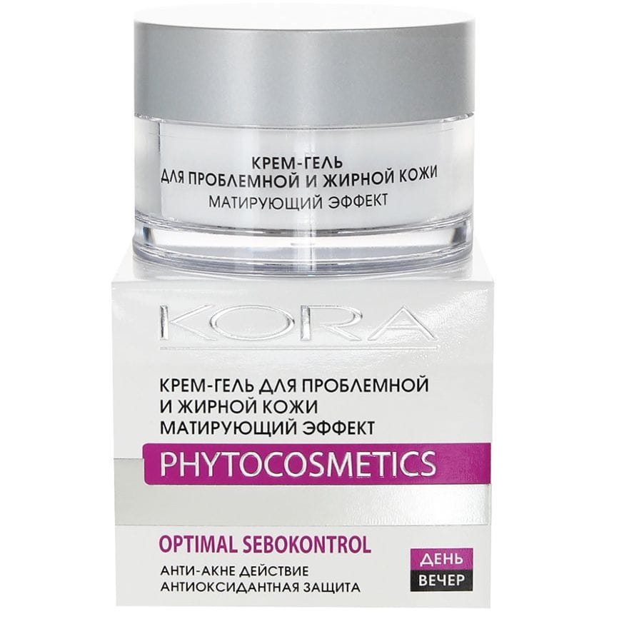 Крем-гель для проблемной и жирной кожи матирующий эффект 50 мл Кора имеет очень легкую текстуру и прекрасно справляется с задачей поддержания гидро-липидного баланса. Жирная, комбинированная и проблемная кожа требует ухода невесомыми составами, не перегружающими и не забивающими поры. Этот эффект вы сможете ощутить, воспользовавшись представленным продуктом. Его основа альфа-глюкан олигосахарид натурального происхождения, не имеющий противопоказаний. Этот ингредиент устраняет патогенную микрофлору и помогает поддержать естественные защитные свойства кожи. Он устраняет раздражения и чувствительность. Поверхностно-активные компоненты увлажняют кожу, обеспечивая ощущение комфорта. К ним относится инулин. Крем-гель для проблемной и жирной кожи матирующий эффект 50 мл Kora содержит большое количество антибактериальных компонентов, такие как экстракт календулы, подорожника и арники.