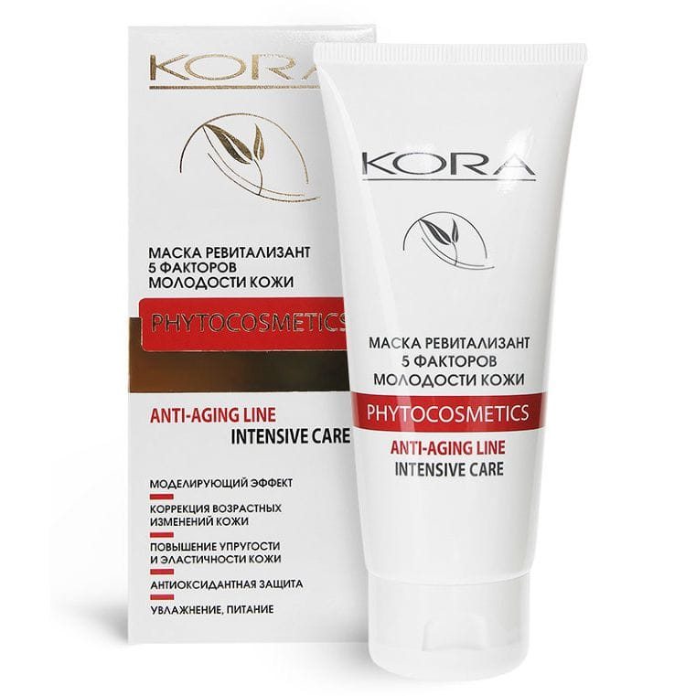 Маска ревитализант 5 факторов молодости кожи 100 мл Кора представлена в стандартной серии аптечных средств для ухода за возрастной кожей. Оказывает интенсивное воздействие в нескольких направлениях – улучшение защитного барьера, питание, увлажнение, улучшение тонуса и подтяжка кожи. Благодаря входящим в состав маслам оливы, ши, сои – кожа получает питательные полинасыщенные жирные кислоты, улучшается ее липидный баланс. Наличие экстракта моркови, содержащего витамин А, позволяет улучшить цвет лица. Он противодействует появлению признаков старения в виде пигментных пятен. В комбинации с витамином C, улучшается цвет кожи, а также повышаются защитные функции при воздействии солнечного излучения. Наличие в составе кремния, эластина и гидролизованного коллагена приводят к подтяжке тканей и стимулируют к выработке собственного. Маска ревитализант 5 факторов молодости кожи 100 мл Kora содержит в составе также молочную и янтарную кислоту, которые помогают мягко разрыхлить и очистить верхний ороговевший слой клеток, осветлить кожу и придать ей ровный рельеф.