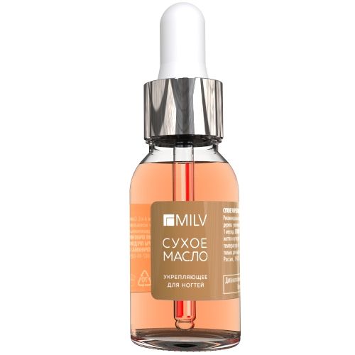 Масло сухое укрепляющее для ногтей 15 мл Milk Oat&Honey Milv – полезный продукт для обладателей сухой кутикулы и ломких тонких ногтей. Текстура хорошо впитывается и не оставляет жирного блеска, и ощущения масла на коже. Оставляет лишь ощущение комфорта, бархатистую поверхность, ухоженные, увлажненные ноги и кутикулу. В состав входит витамин А, Е – они необходимы для увлажнения и питания кожи. Каротин, содержащийся в витамине А, предупреждает сухость и растрескивание кутикулы. Смола мастикового дерева помогает укрепить ногтевую пластину. При регулярном использовании, масло сухое укрепляющее для ногтей 15 мл Милк Оат энд Хани Милв заметно улучшает плотность ногтей и устраняет полностью проблему с неухоженной кутикулой.