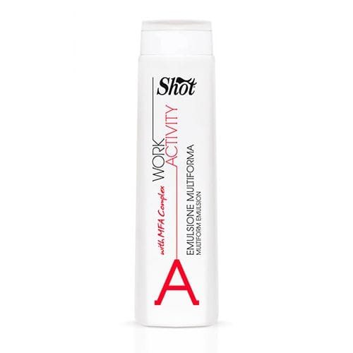 Эмульсия для гладкой прически 250мл, Work Activity, Shot содержит специальный MFA комплекс, который кондиционирует волосы, а запоминающие частицы, служат для легкой фиксации. Помимо функции легкого контроля за укладкой, эмульсия для гладкой прически 250мл, Ворк Активити, Шот является ухаживающим, восстанавливающим средством, в составе которого присутствует кератин и коллаген. Средство подходит для регулярного использования и не вредит здоровью волос. Продукт считается многофункциональным, потому что предлагает несколько способов применения – на все волосы для последующего выпрямления с помощью брашинга или сушки с помощью диффузора, для создания упругих локонов.