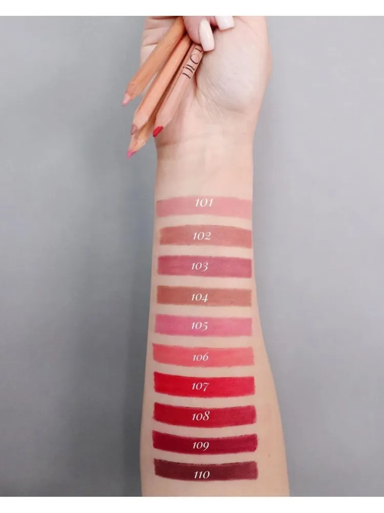 Lilo Карандаш контурный для губ тон 107. Матовые губы – абсолютный тренд последних сезонов. Мягкий и ультра пигментированный карандаш не только придаст губам четкий контур, но может быть использован как самостоятельное средство для создания безупречного матового покрытия. Экстремальная стойкость карандаша гарантирует надежную фиксацию помады.